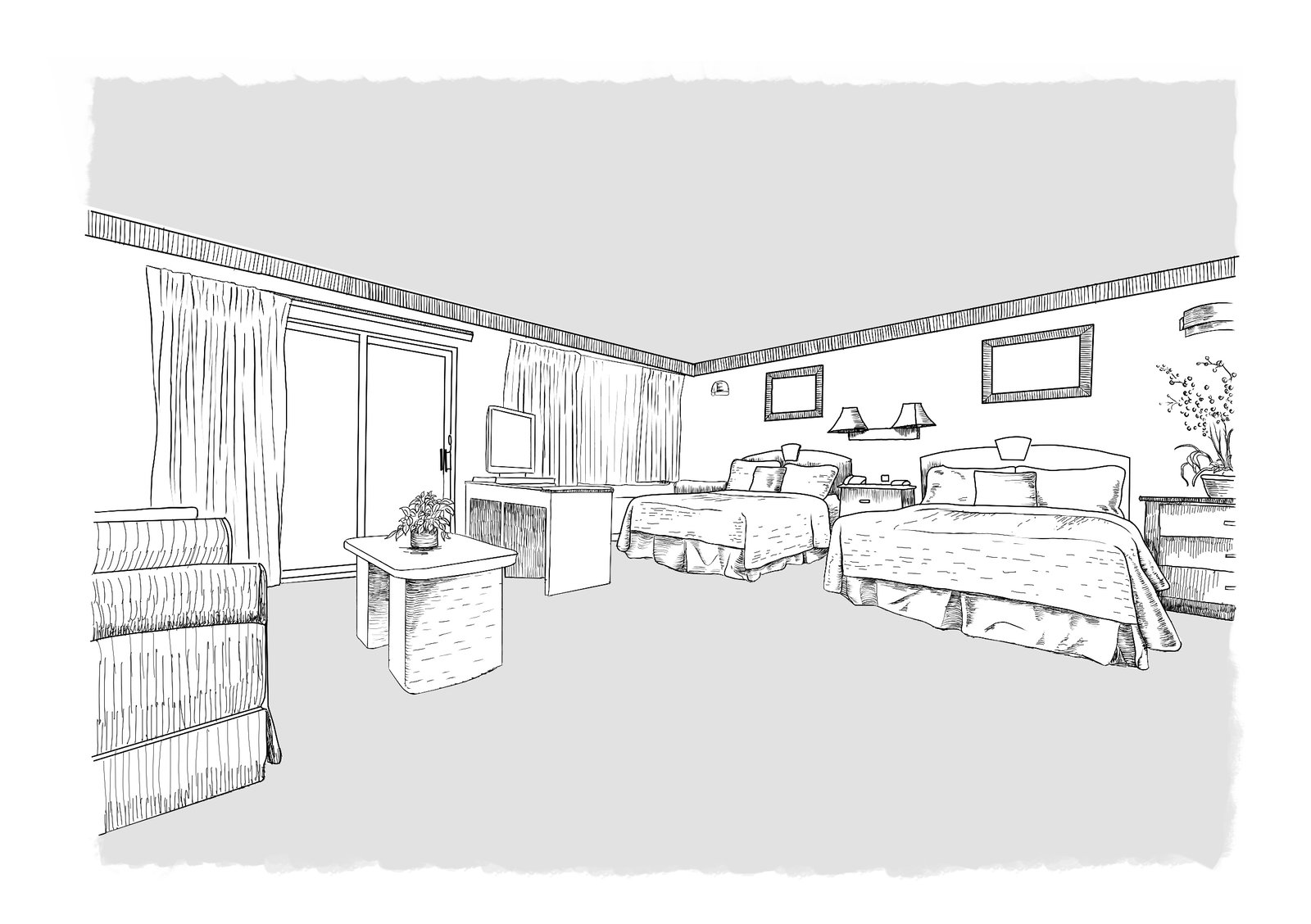 The Deluxe rooms are large guest room with two Queen Beds, sofa bed, wet bar fridge Jacuzzi tub and balcony. Approximately 425 SQ FT.